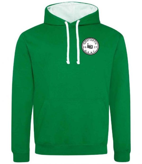 Gosforth Harriers Hoody including embroidered Club Logo on left chest and Club Name printed large on back.